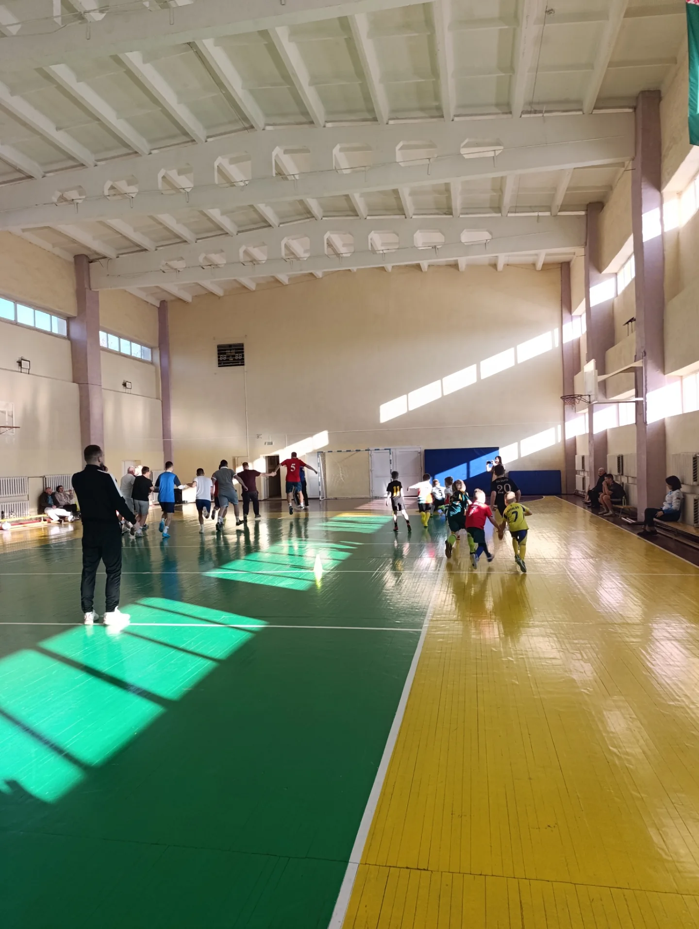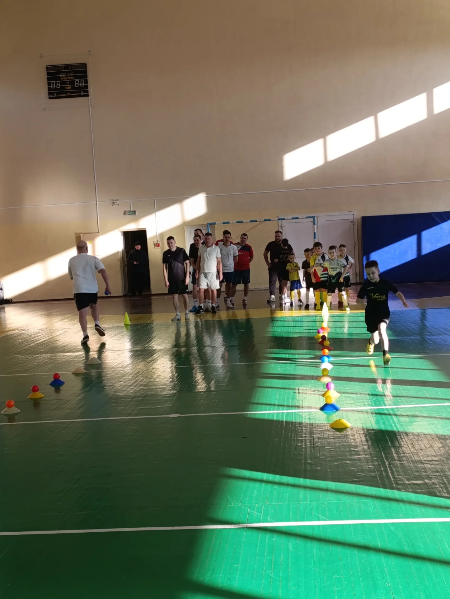 После состязания ребята сыграли против родителей в футбол и показали отличную игру. В зале царила атмосфера бури, азарта и волнения.